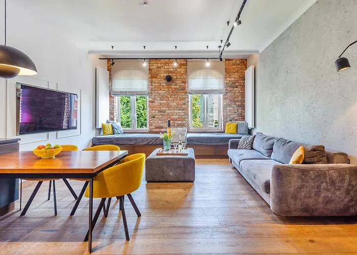 Lägenheten är belägen i distriktet Sopot Centrum, ungefär 17 minuters promenad från Sopots pir. Centrala Sopot kan nås på 5 minuters gångavstånd. Bland matställen finns det Nalesnikarnia Fanaberia och Retromaniak belägna inom 5 minuters promenad från boendet.